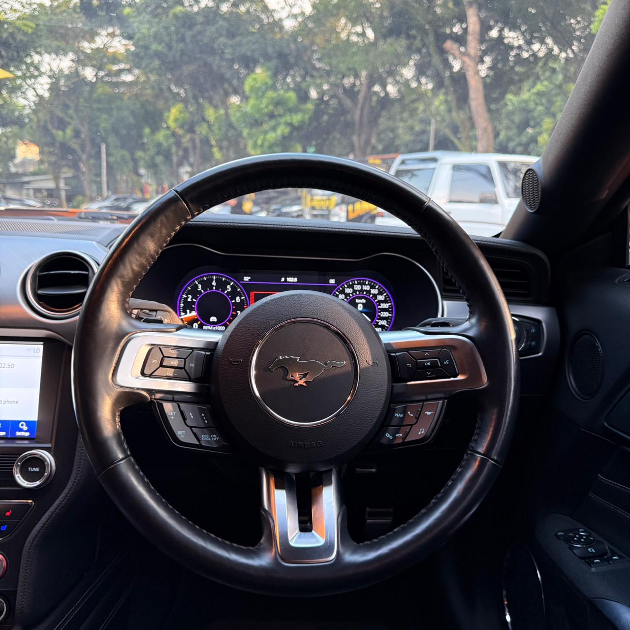 Dari sisi keselamatan, Mustang ini sudah dibekali fitur lengkap seperti ABS, EBD, ESC, TCS, Blind Spot Monitoring, Collision Warning, hingga kamera dan sensor parkir depan-belakang—memberikan rasa aman di setiap situasi.